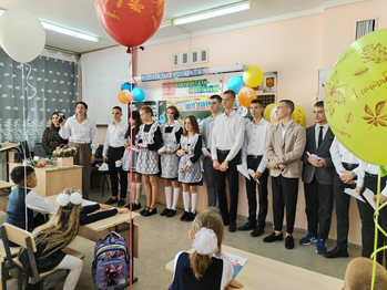 На линейке присутствовали особые почётные гости: Парфёнова Л. Ф. - мать Парфенова Дмитрия, выпускника нашей школы, погибшего во время выполнения своего воинского долга в Чечне, и родители наших учеников - воин-интернационалист, исполнявший свой долг за пределами нашей страны (Дворяткин А. В.), и участники специальной военной операции (Вакуров С. В. и Киселёв С. П.).