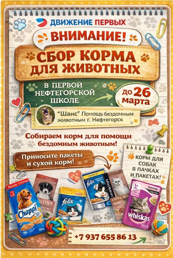 🐕Друзья, у нас отличные новости — в первой Нефтегорской школе успешно завершился сбор помощи для бездомных животных группы «Шанс»!